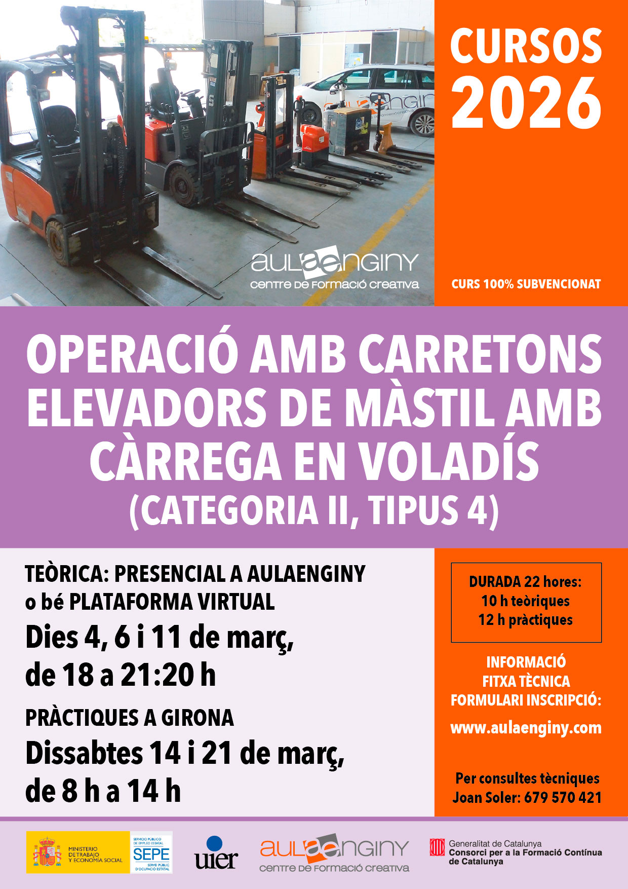 CURS D’OPERACIONS AMB CARRETONS ELEVADORS DE MÀSTIL AMB CÀRREGA EN VOLADÍS (CATEGORIA II, TIPUS 4)