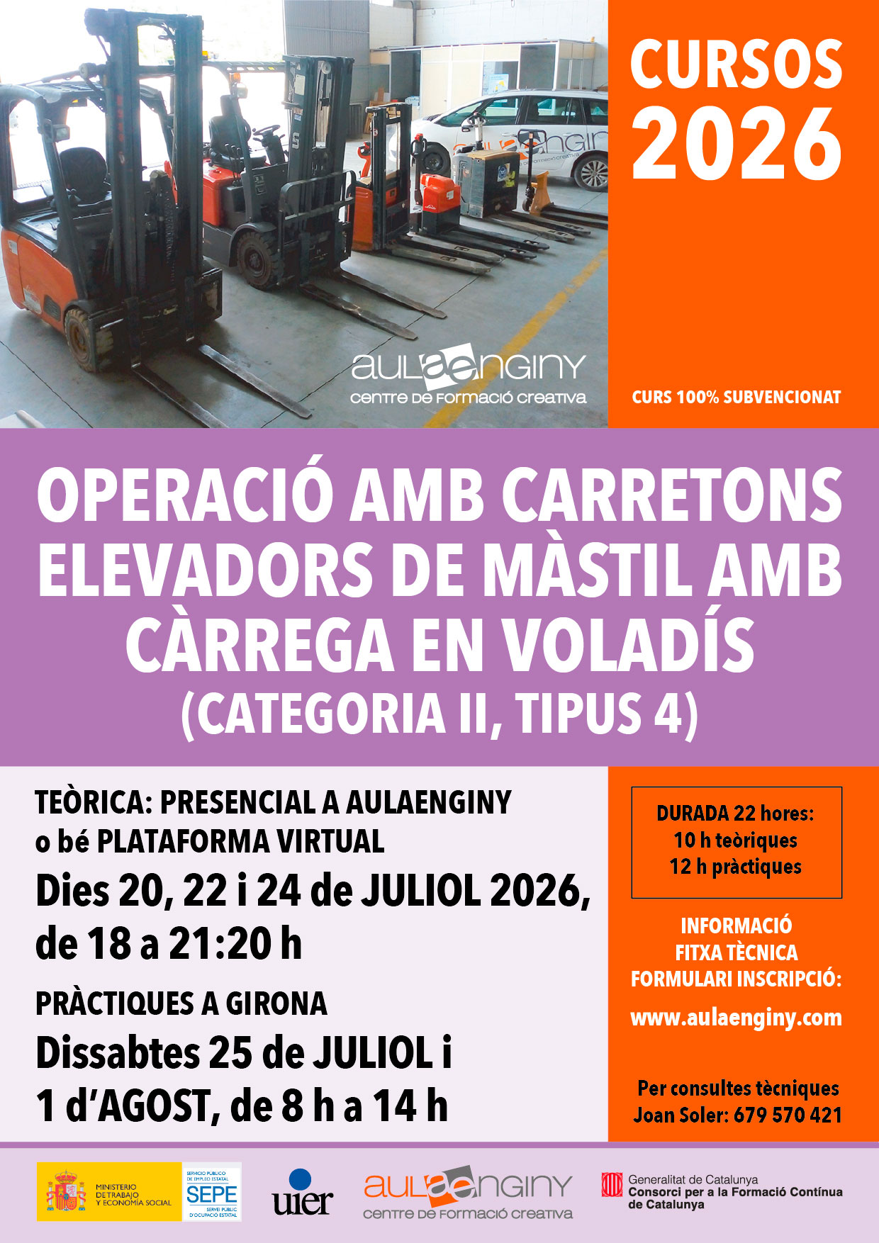 CURS D’OPERACIONS AMB CARRETONS ELEVADORS DE MÀSTIL AMB CÀRREGA EN VOLADÍS (CATEGORIA II, TIPUS 4)
